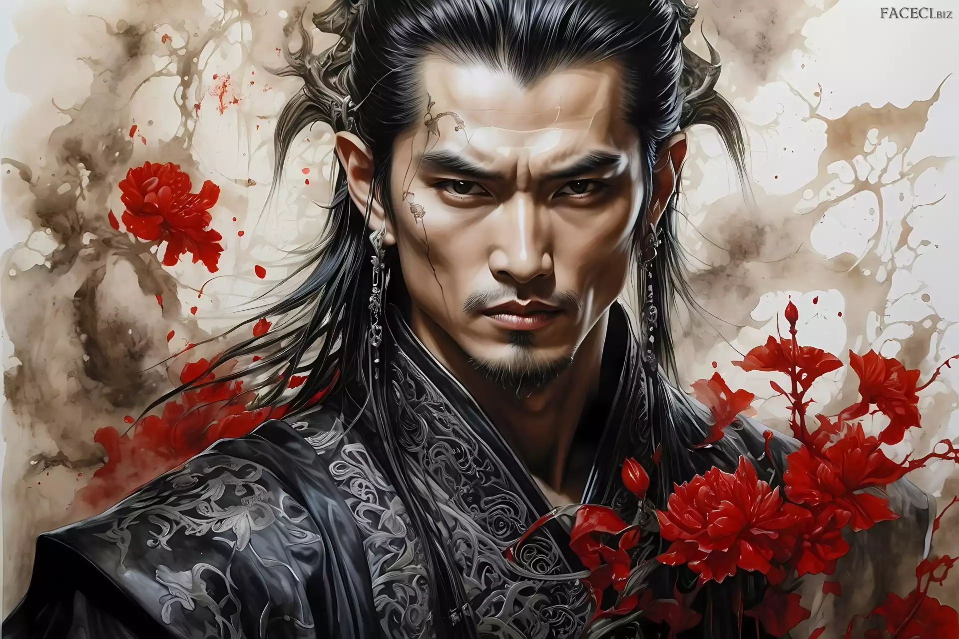 Atrament, Technika, Grafika, Azjata, Wojownik - faceci.biz